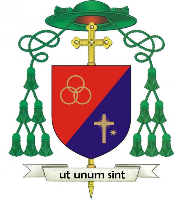 A divisa “Ut unum Sint”, que todos sejam um, lembra o ministério e a vocação do Bispo de ser sinal da unidade da Igreja Particular que preside como Pastor.